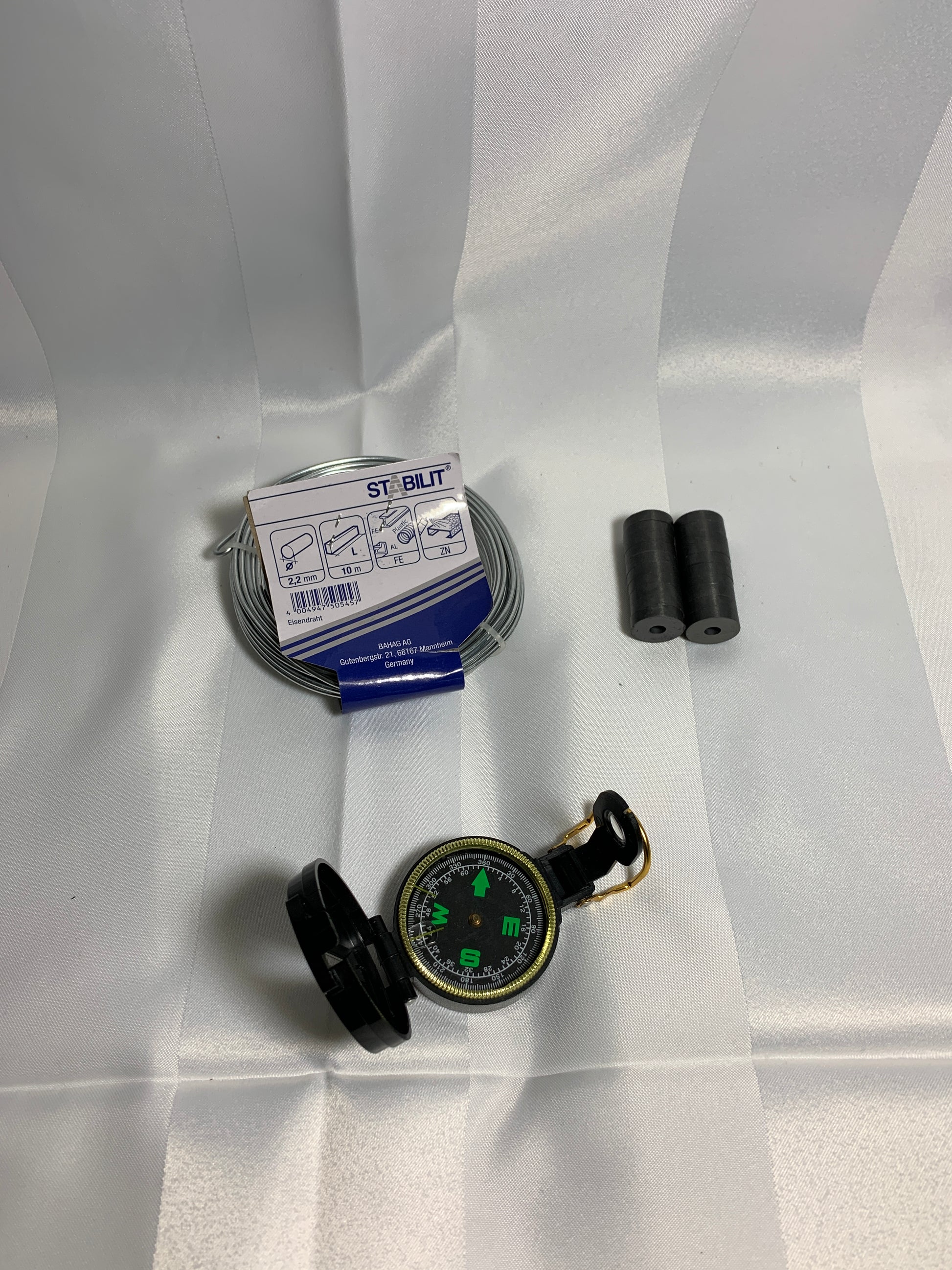 Die "Boden Magnet Antennen Sets" (klein) bestehen aus einem 10 m langen (Ø 2,2 mm) verzinktem Eisendraht und insgesamt 20 Magneten (Ø 20mm), sowie einen einfachen Kompass, zur Erstellung von Boden Magnet Antennen für Beet oder Rasen.