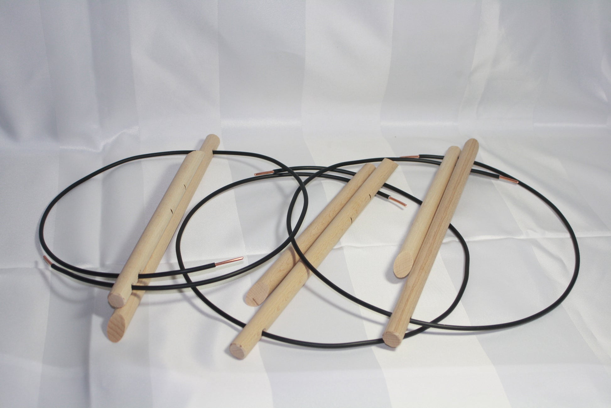 An den Holzstäben sind jeweils 2 Markierungen, für unterschiedliche Erdtiefen angebracht. Bei Verwendung der Markierungen, die tiefere Seite nach Norden ausgerichtet, wird automatisch ein 30 Grad Winkel erzeugt, der zu einer rechtsdrehenden Polarisierung führt.