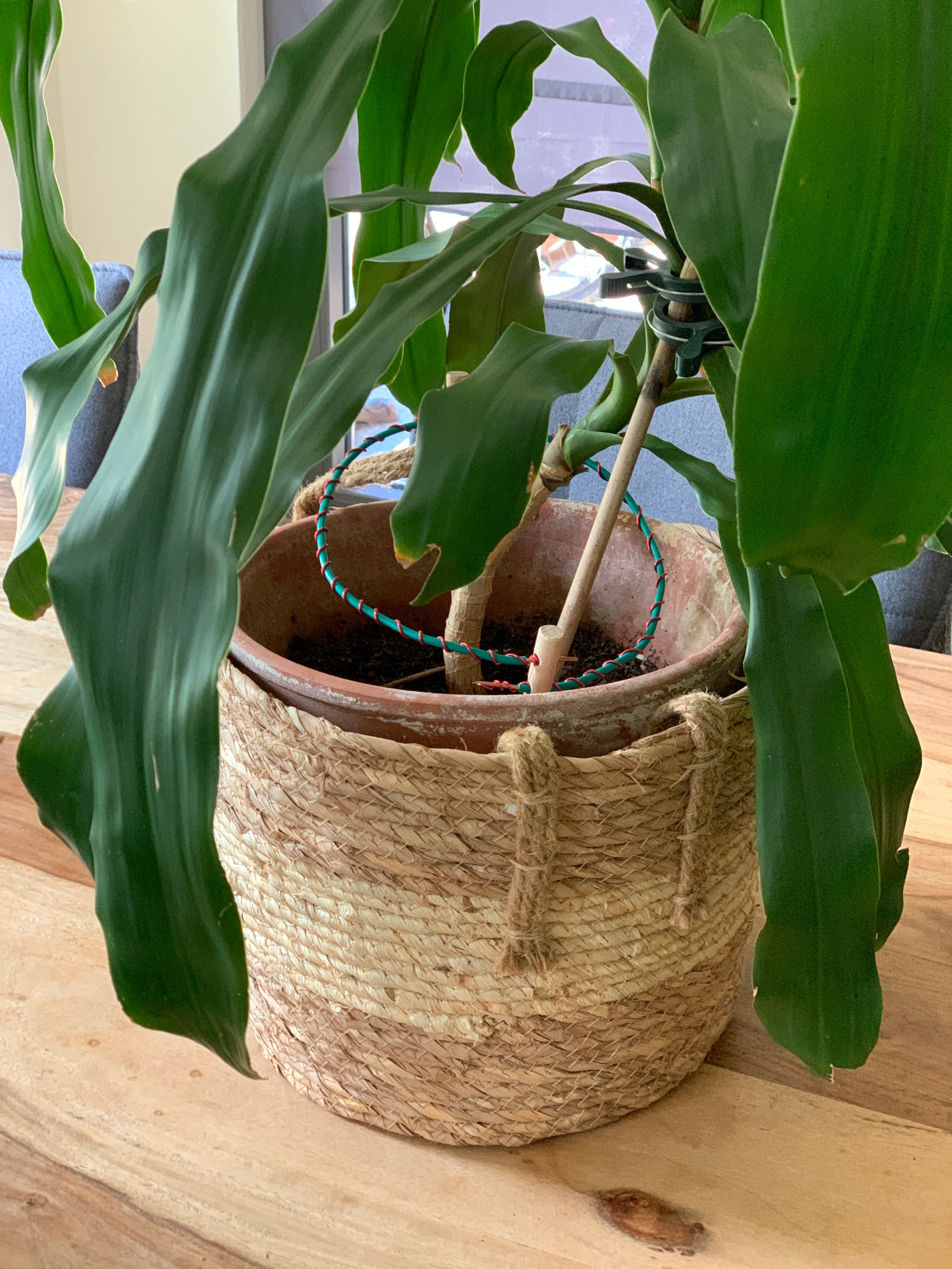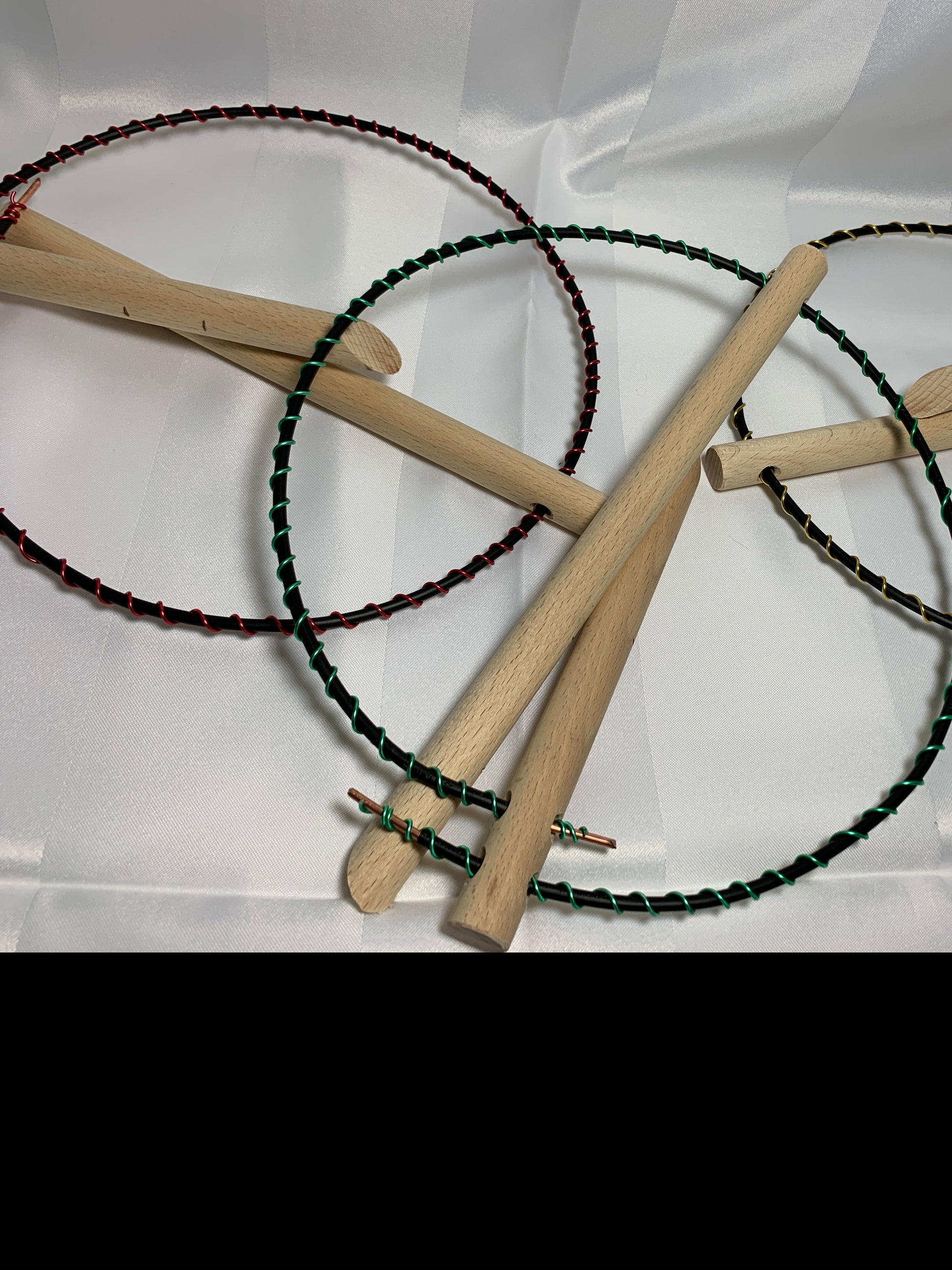 Getragen von Hartholz Erdspießen, Durchmesser der Spule ca. 24 cm.